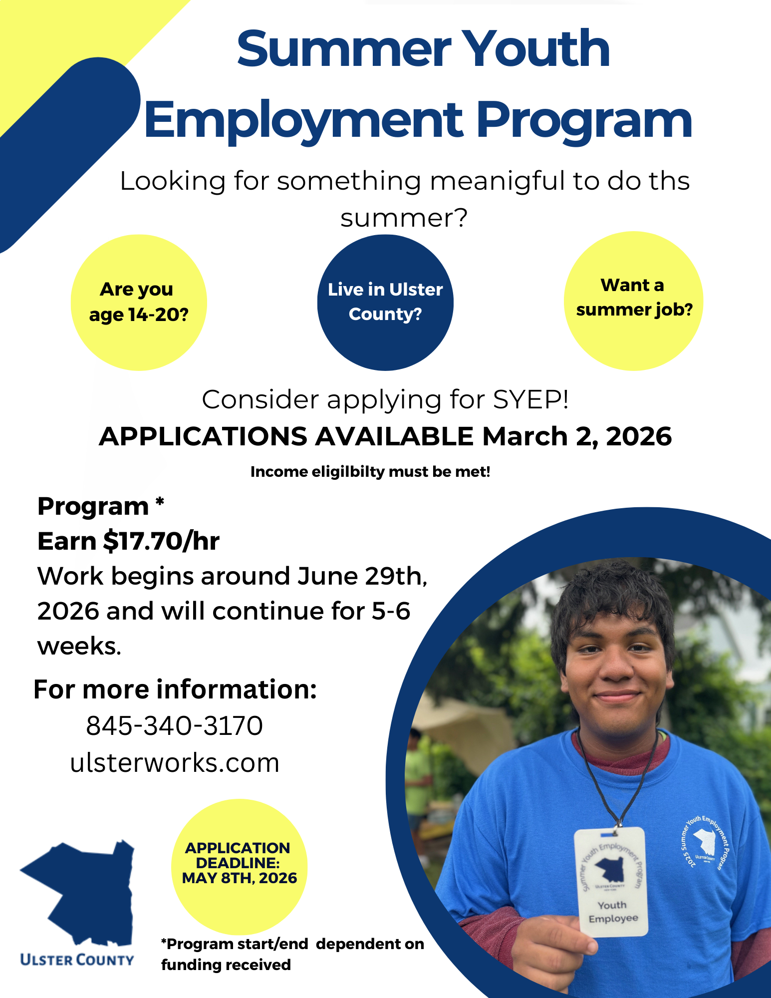 2026 Summer Youth Employment Program applications will be accepted March 2nd to May 8th, 2026.